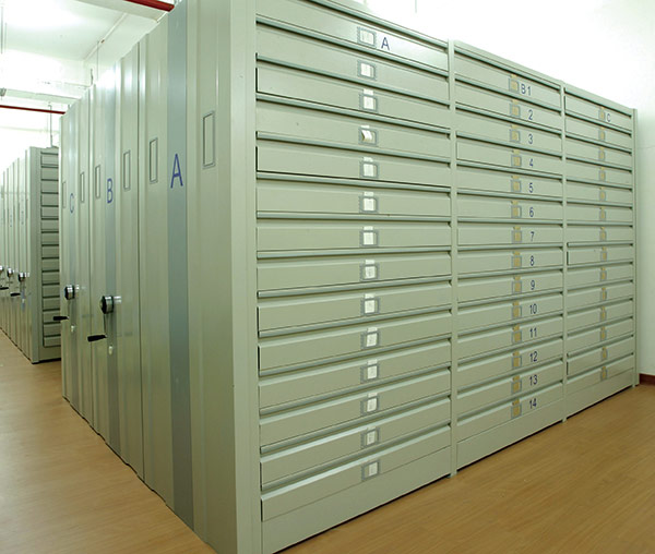 多年以來,邦達投入大量的人力、物力研發適合于文博系統藏品庫專用密集架和其他儲藏設備,設計和定制了一批又一批批結構合理、款式新穎、質量上乘、非常適合客戶使用的藏品設備。邦達的重型密集架技術解決了“超重、超大、超長”等問題;專利滑軌技術解決了抽屜類儲藏家(柜)安全等問題;為消除和減輕地震時對藏品的損害,還研發成功了幾種類型密集儲藏架底盤防震減震裝置、頂部/底部防傾倒裝置,此外還研發了密集架防水、防塵、防鼠裝置。